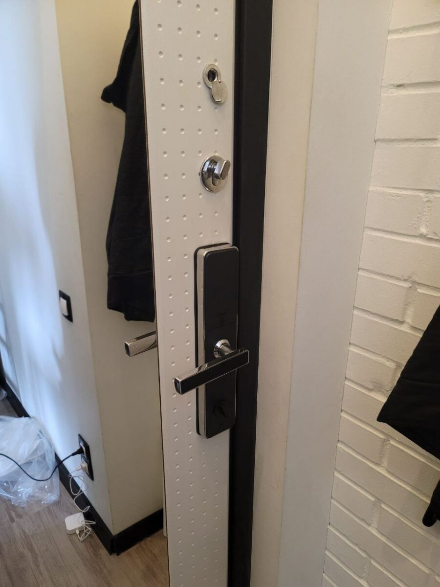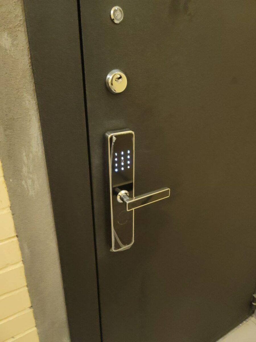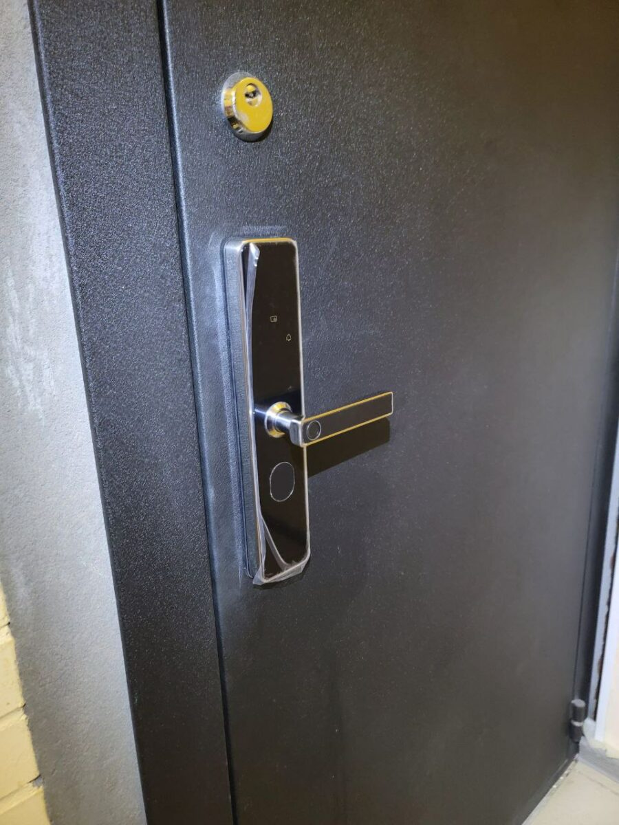 Замок 🔒 Z818Sс русским языком из стали и закаленного стекла установлен на входную дверь.